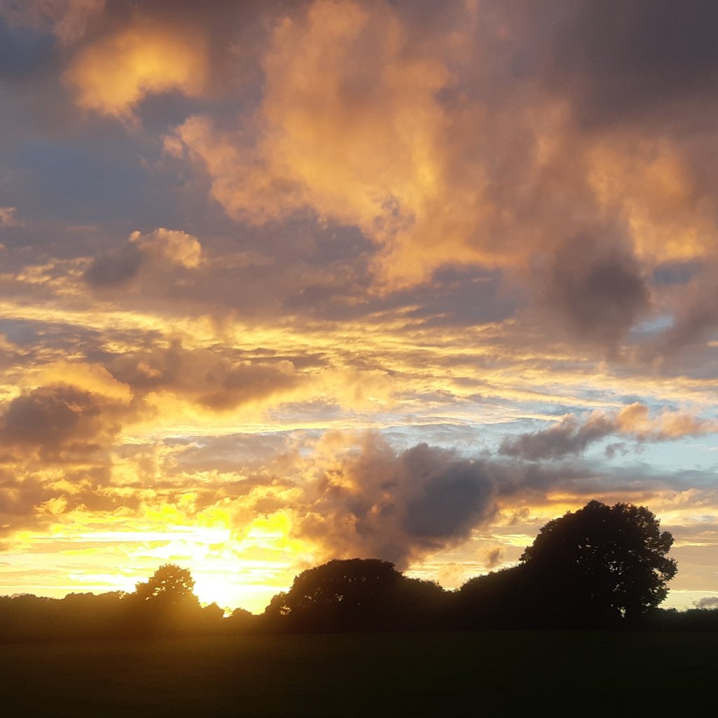 I live on the brow of a South West facing hill overlooking a wide, tree filled valley so am treated to many spectacular sunsets only a few steps away. Endlessly variable weather brought by Atlantic storms and a wavering Jet Stream with air masses from three different main directions contributed to all kinds of cloud formations and sky colours.