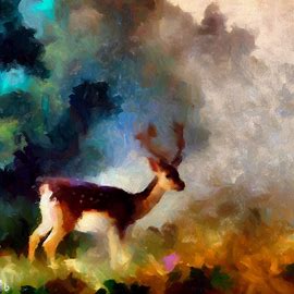 The fallow deer emerge from the woods. Their antlers silhouetted in the mist, They graze the fields as quiet as they could.