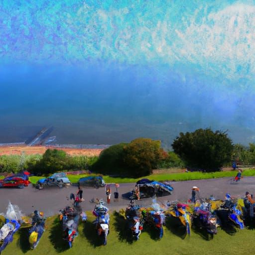 As they reached the top of the hills, they were greeted by a breathtaking sight. Spread out before them was the entire two mile seafront promenade, lined with hundreds of motorbikes, their engines revving in anticipation.