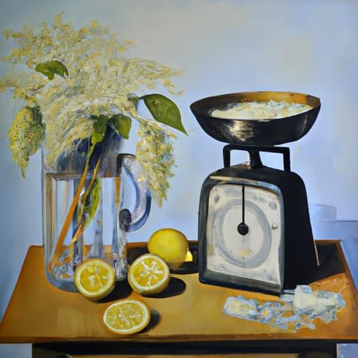 • Put the hot water and sugar into a large container (I use a stainless steel bucket) and stir until the sugar dissolves. Add the finely sliced lemons and the flower heads and stir gently.