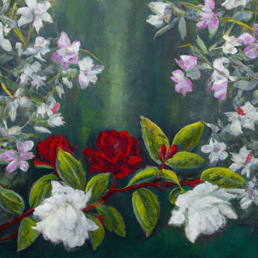 Willow herb, roses and mock orange blossom