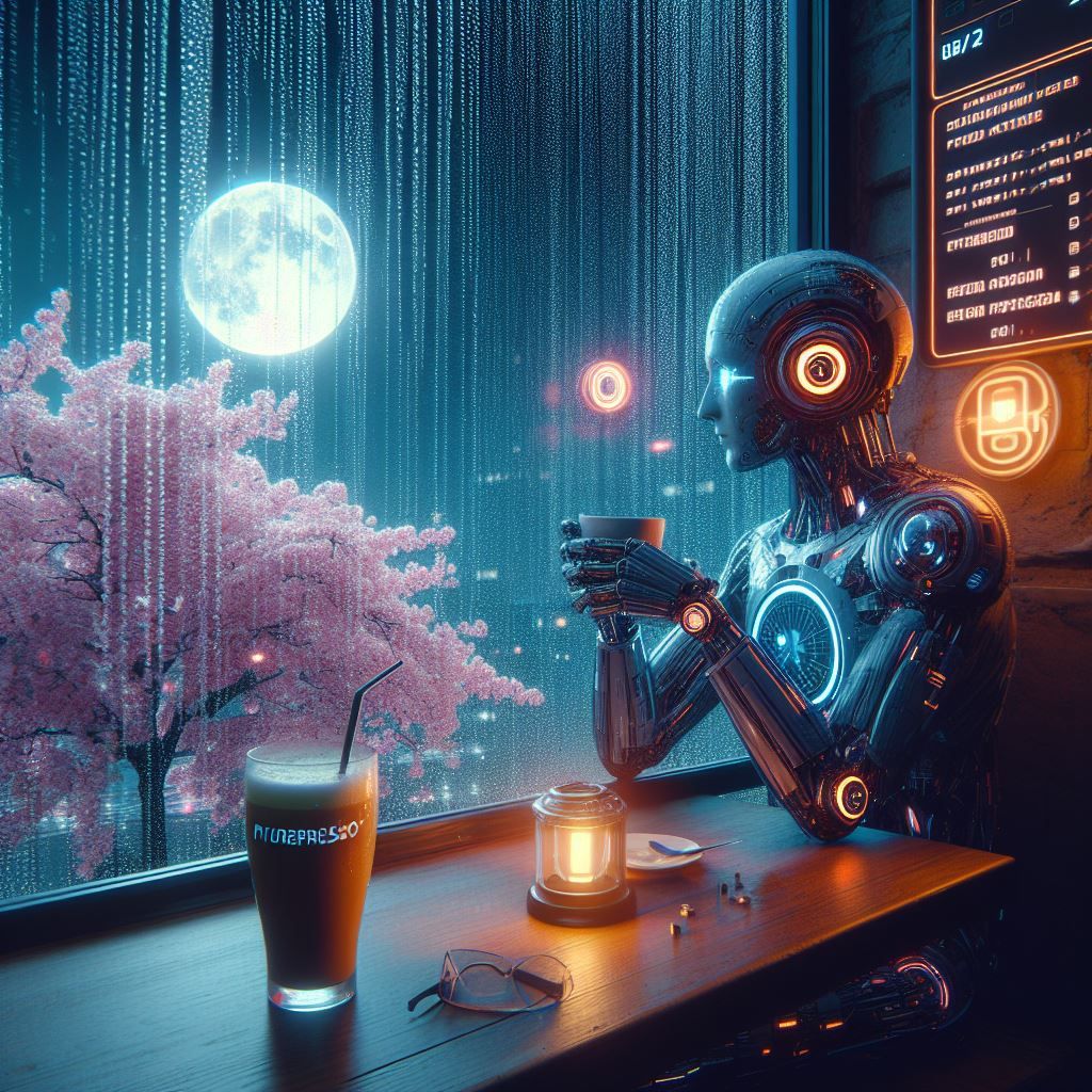 Patrons arrived, their faces etched with lines of experience.They ordered cups of “Futurespresso” and sat by the window.Outside, the world shifted.