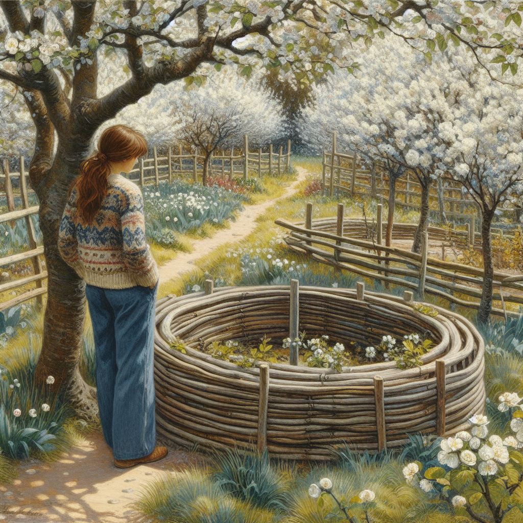 Neighbors peeked over the fence, curious and intrigued. They marveled at the circular wonder taking shape—the hazel wattle bed that defied straight lines and embraced imperfection. “What magic is this?” they wondered aloud.