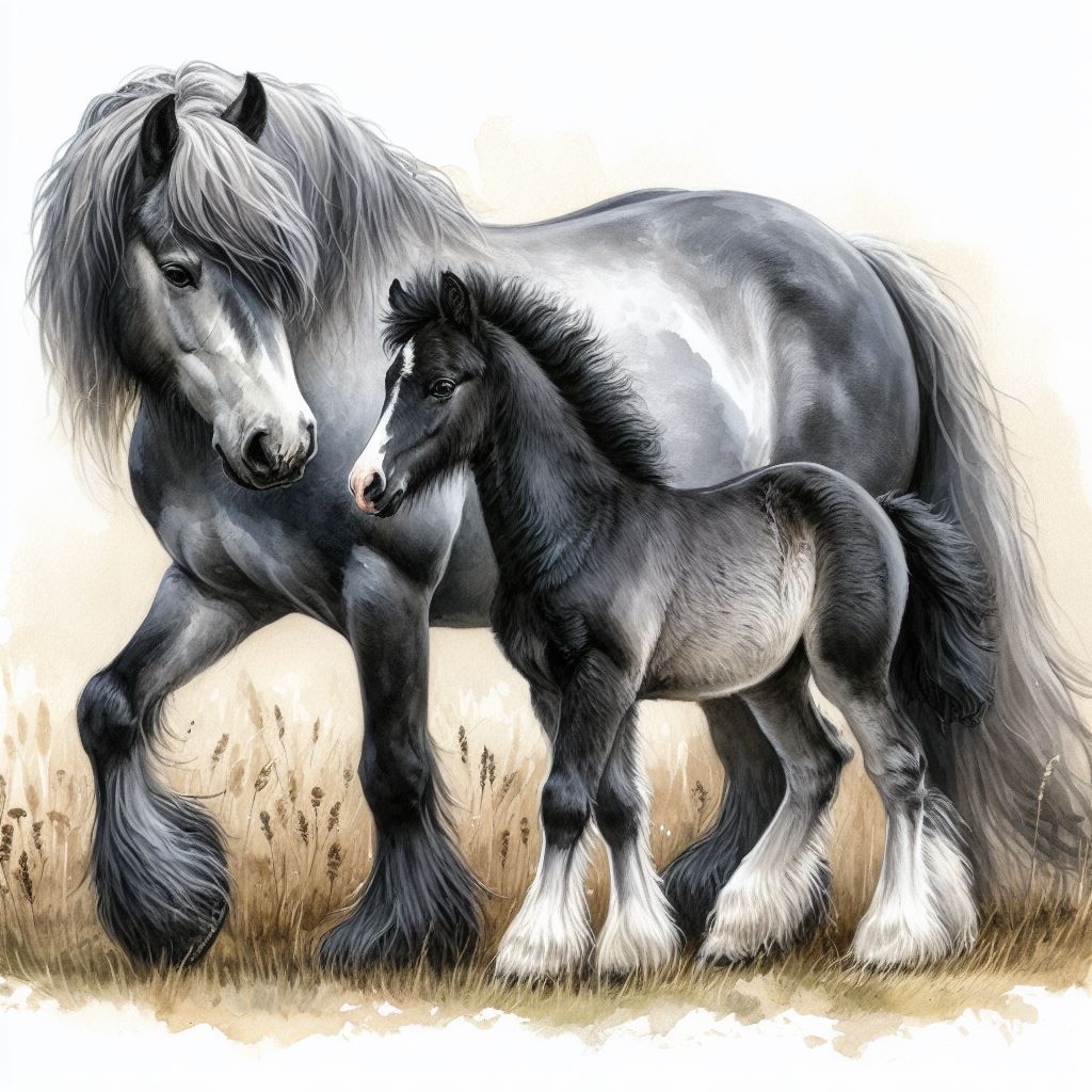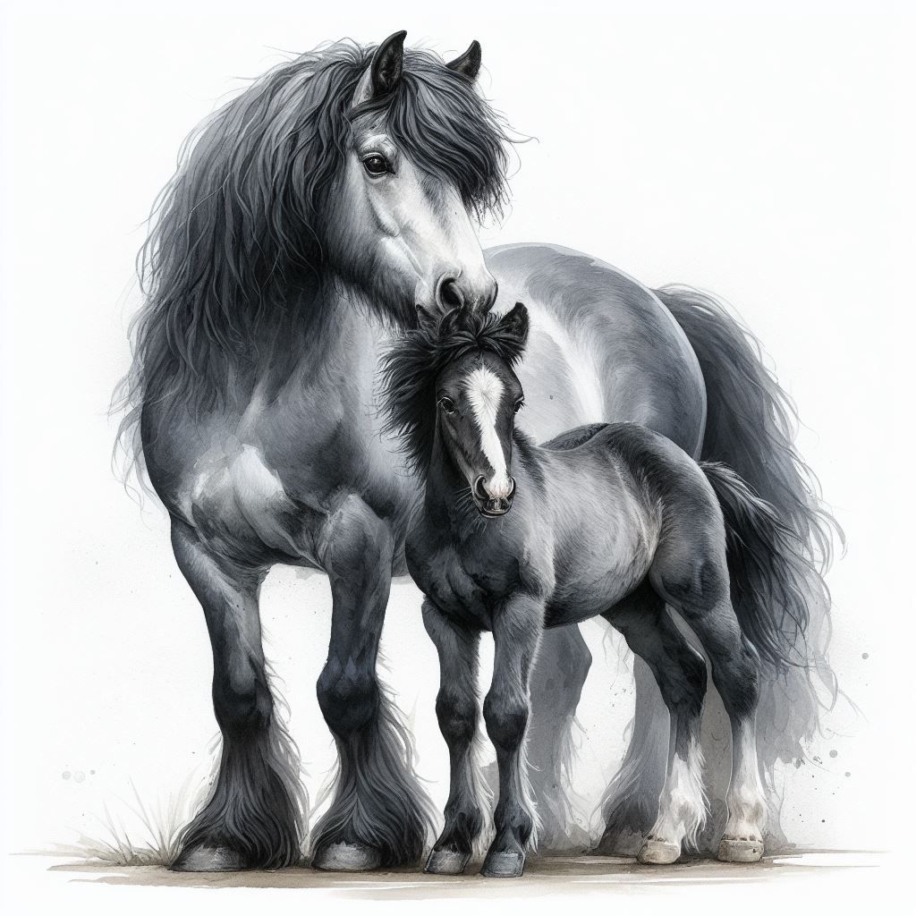 One crisp spring morning, I stood under trees by the stream, watching a mare named Luna. Her moonlight-grey coat was damp with river-mist under the early sun, and her eyes held a quiet wisdom. Beside her, a delicate foal—darker, shadow-like and wobbly-legged—nuzzled against her side. Luna’s maternal gaze spoke volumes: protection, guidance, and unwavering love.