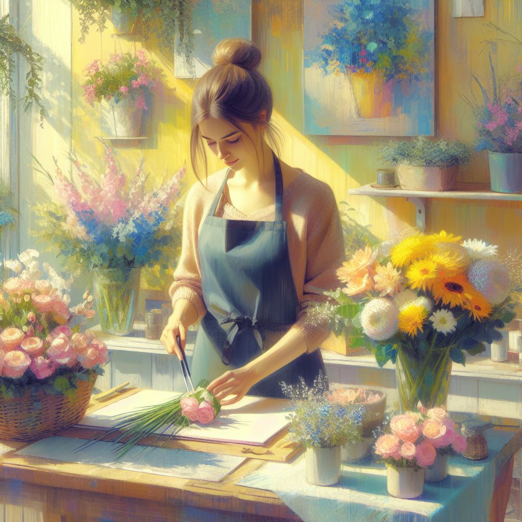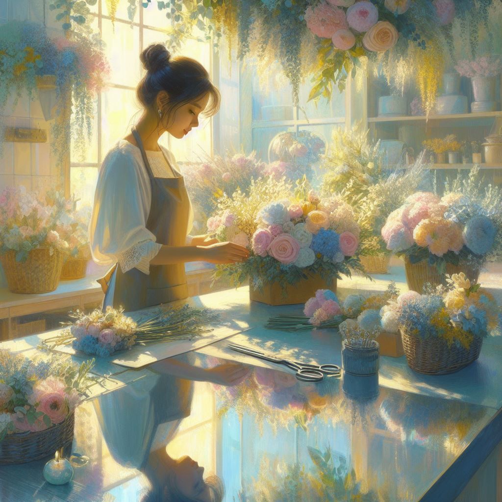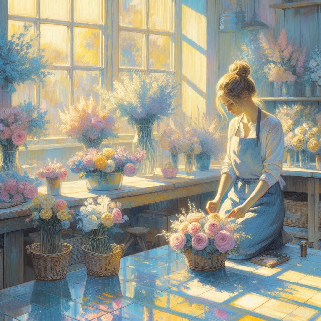Once upon a sunny morning, Lily, a passionate floral designer, stepped into a cozy flower shop. The air was fragrant with the delicate scent of roses, and the sunbeams danced on the petals like mischievous fairies.