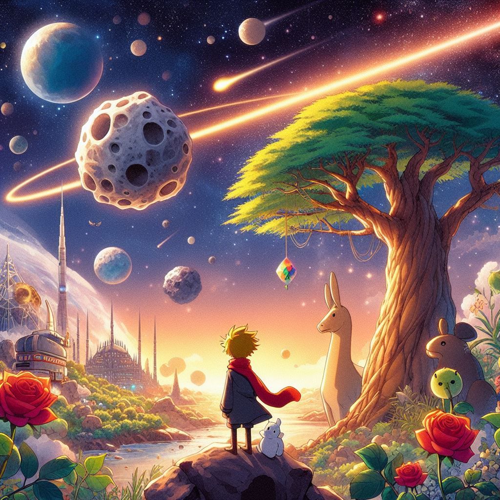 In summary, “The Little Prince” explores themes of loneliness, friendship, love, and human nature through the adventures of a young prince traveling across planets and encountering various characters. It’s a beautiful tale with valuable lessons for both children and adults alike.🌟✨🌹🚀
