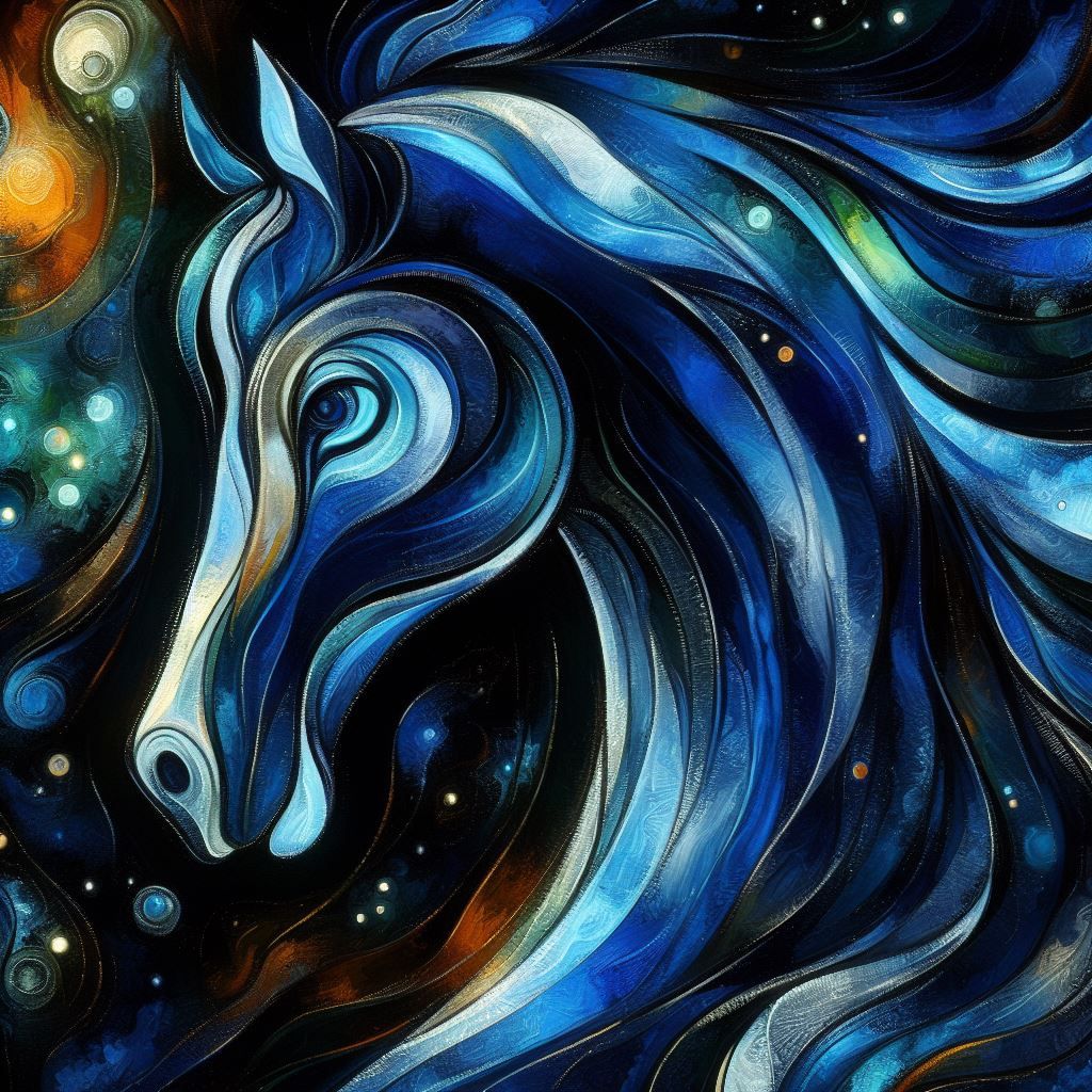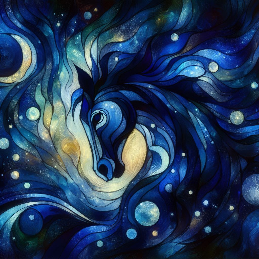“Beneath celestial skies, Sirius Blue gallops forever, his spirit unbridled.”