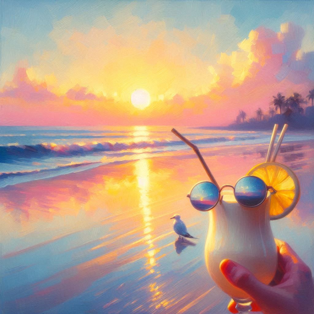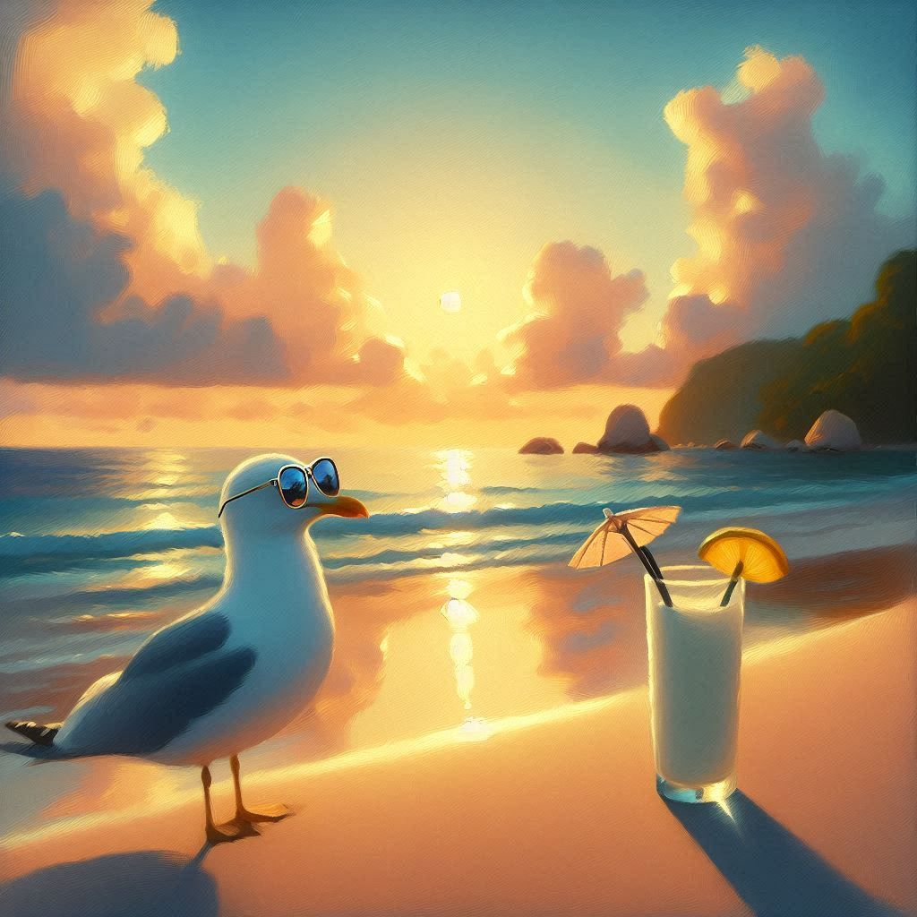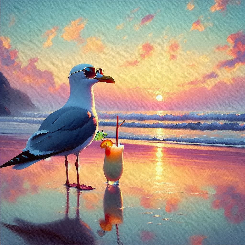 - Now add a quirky element: a seagull wearing sunglasses, sipping a piña colada. 🏖️🕶️🍹